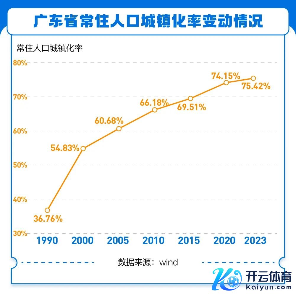 从数据来看,驱动广东经济三十多年领跑的发动机之一——城镇化,畴昔量的连接增长难度相对较高。2023年末,广东省常住东谈主口城镇化率为75.42%,已接近推崇国度平均80%的水平。城镇化率跳跃70%后,每一个百分点的增长都辛勤宝贵。