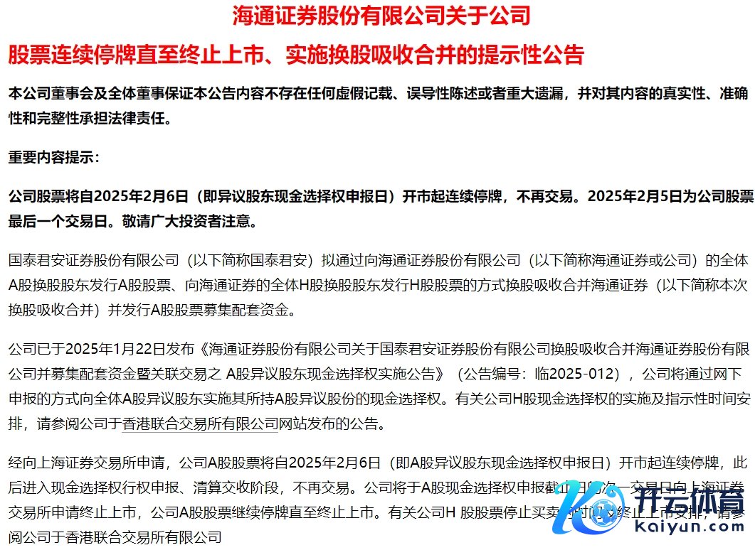 海通证券:2月5日为公司股票终末一个交游日海通证券:2月5日为公司股票终末一个交游日