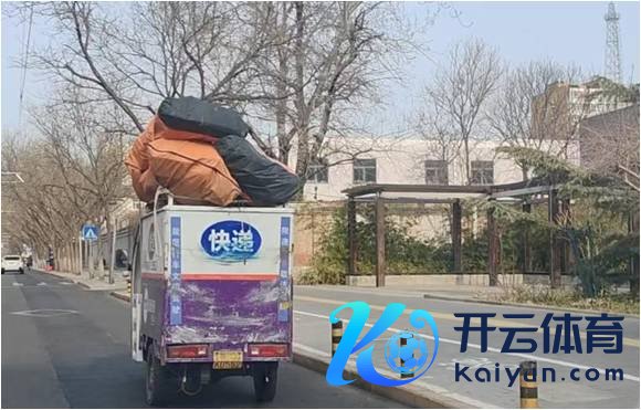 大岁首二北京街说念上正在“奔突”的快递车(段常颖摄)